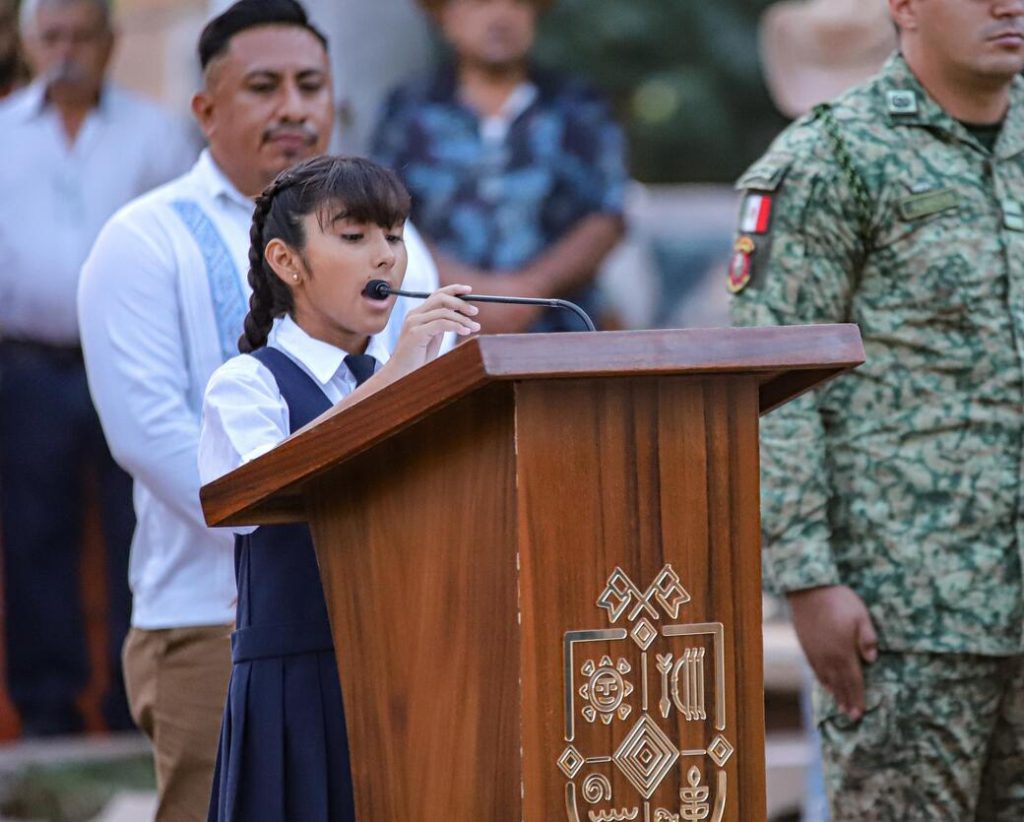 Como parte del acto cívico, una alumna de cuarto grado de la escuela primaria 20 de Noviembre presentó una reseña histórica que evocó los hechos que dieron origen al movimiento revolucionario entre 1910 y 1920, destacando el liderazgo de Francisco I. Madero y los levantamientos encabezados por Pascual Orozco, Francisco Villa y Emiliano Zapata, episodios que desembocaron en la renuncia de Porfirio Díaz y marcaron un nuevo rumbo para México.