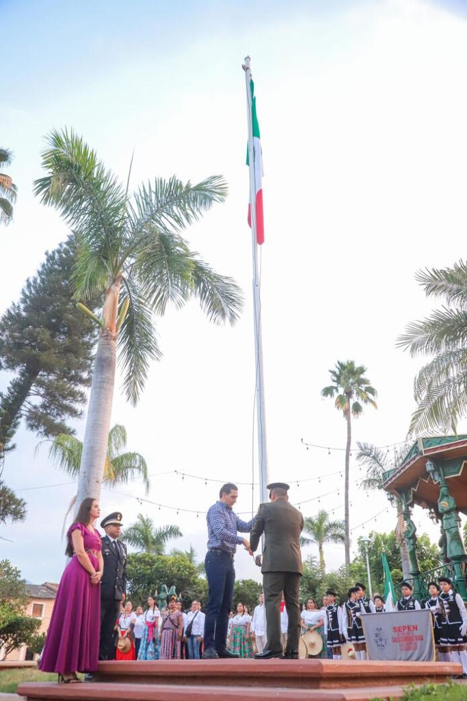 La ceremonia tuvo lugar en la plaza pública de Valle de Banderas, donde el presidente municipal, Héctor Javier Santana García, encabezó el izamiento de la bandera nacional. Durante su mensaje, el alcalde agradeció la presencia de las instituciones civiles y militares: