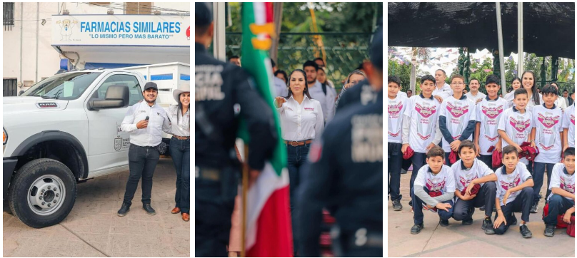 Esta mañana se realizaron los honores a la Bandera, encabezados por la presidente municipal Mirtha Iliana Villalvazo Amaya, en donde se entregaron dos camionetas a dos áreas del Ayuntamiento, uniformes para un equipo deportivo de San Juan de Abajo y laptops pendientes a jóvenes estudiantes de preparatoria y universidad.