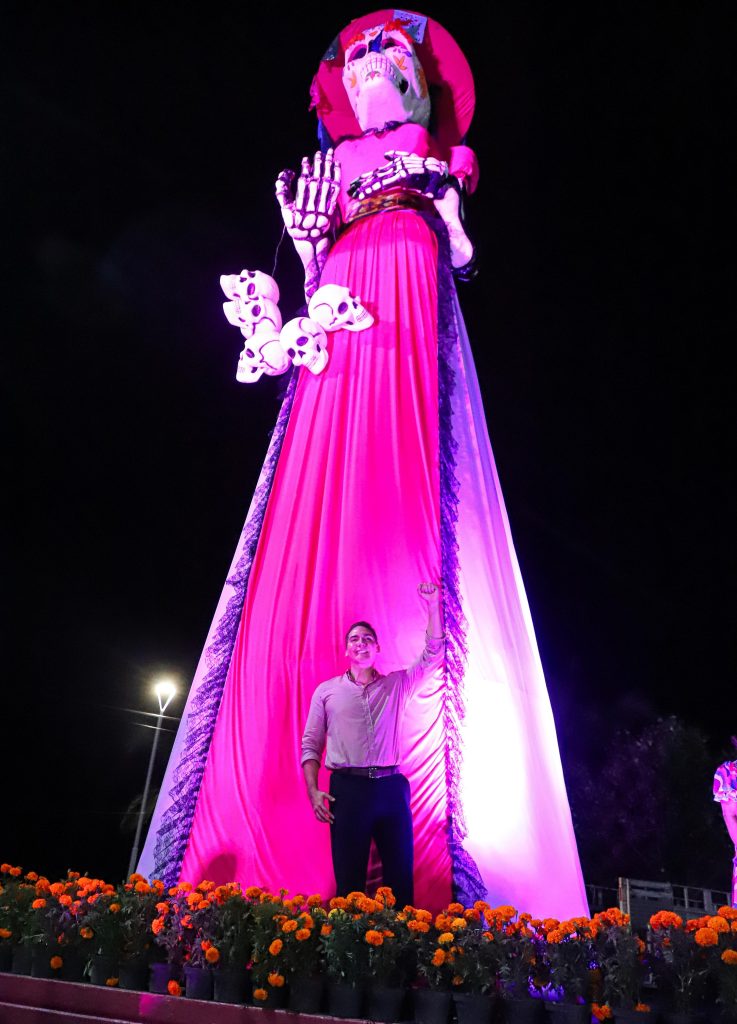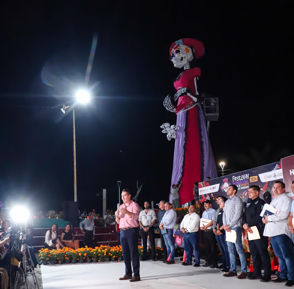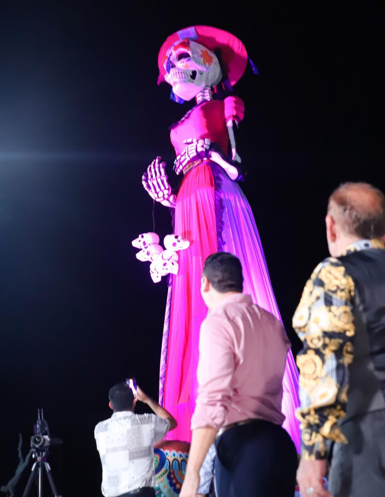 Finalmente, Héctor Santana realizó una cuenta regresiva para encender oficialmente la catrina gigante de Bucerías, símbolo de los festejos de Día de Muertos, instalada al inicio del evento y encendida al cierre.