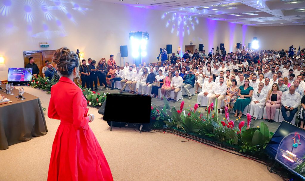 - Ante un abarrotado salón en el Hotel Marival, en Nuevo Nayarit, con todos los sectores productivos y los 3 niveles de gobierno presentes, la alcaldesa rindió el informe de sus fructíferos 6 meses al mando de Bahía de Banderas.