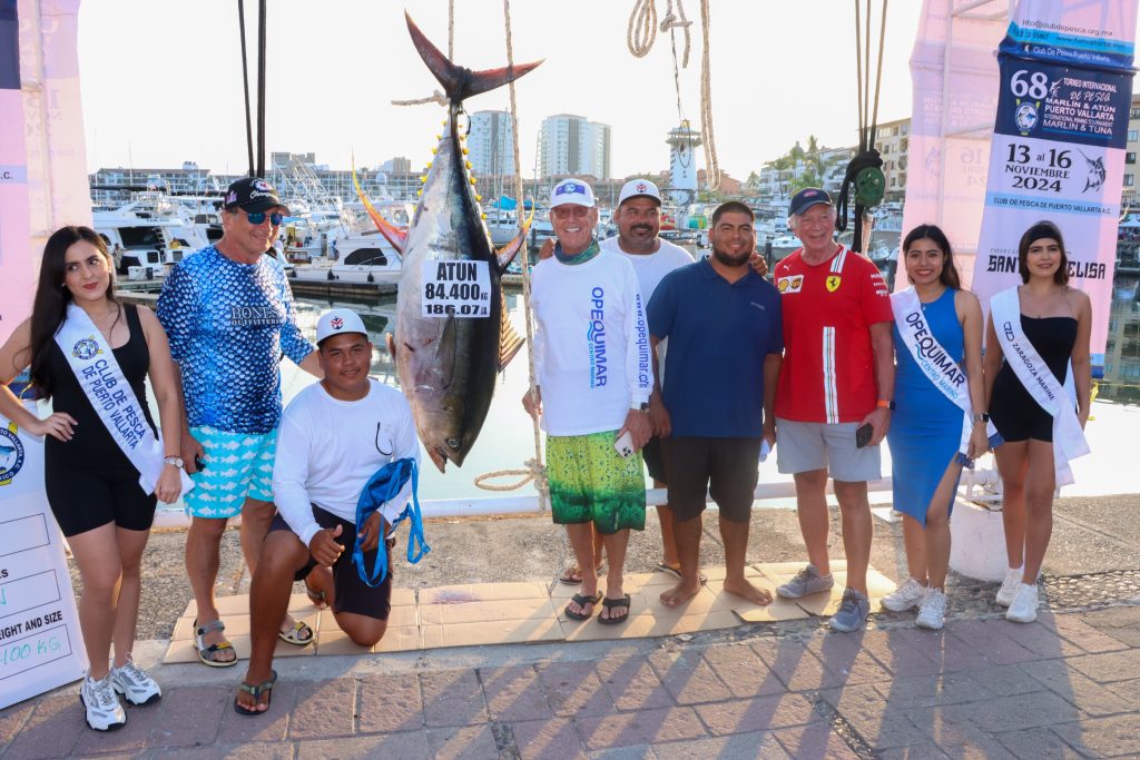 En el primer día el equipo 1+1 se llevó el primer lugar en el 68° Torneo de Pesca de Puerto Vallarta con un atún de ¡84.4 kg!