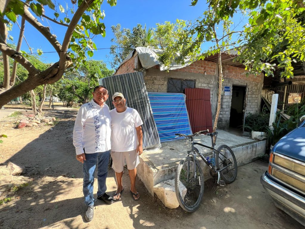 - El alcalde entregó este viernes láminas y colchones a vecino de la colonia Laguna del Coapinole, cuya vivienda sufrió daños por el ciclón