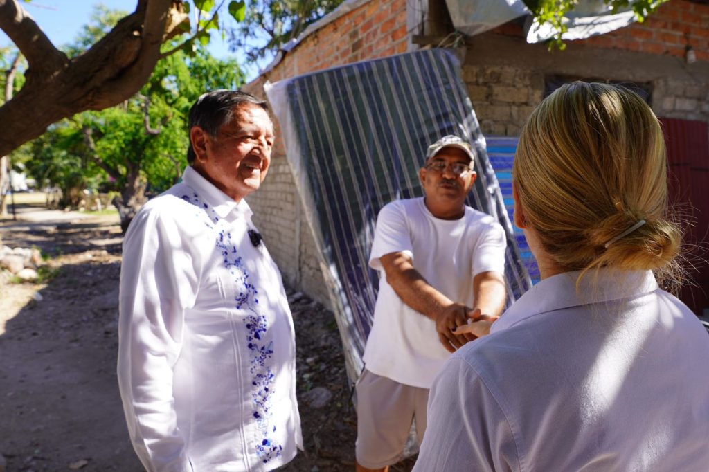 Dando seguimiento a las acciones de apoyo a las familias que resultaron afectadas por el paso del huracán “Lidia” en octubre pasado, el alcalde Luis Alberto Michel Rodríguez, estuvo este viernes en la colonia Laguna del Coapinole, donde entregó láminas y un par de colchones a los moradores de una modesta vivienda que sufrió daños en el techo y perdieron parte de sus pertenencias.