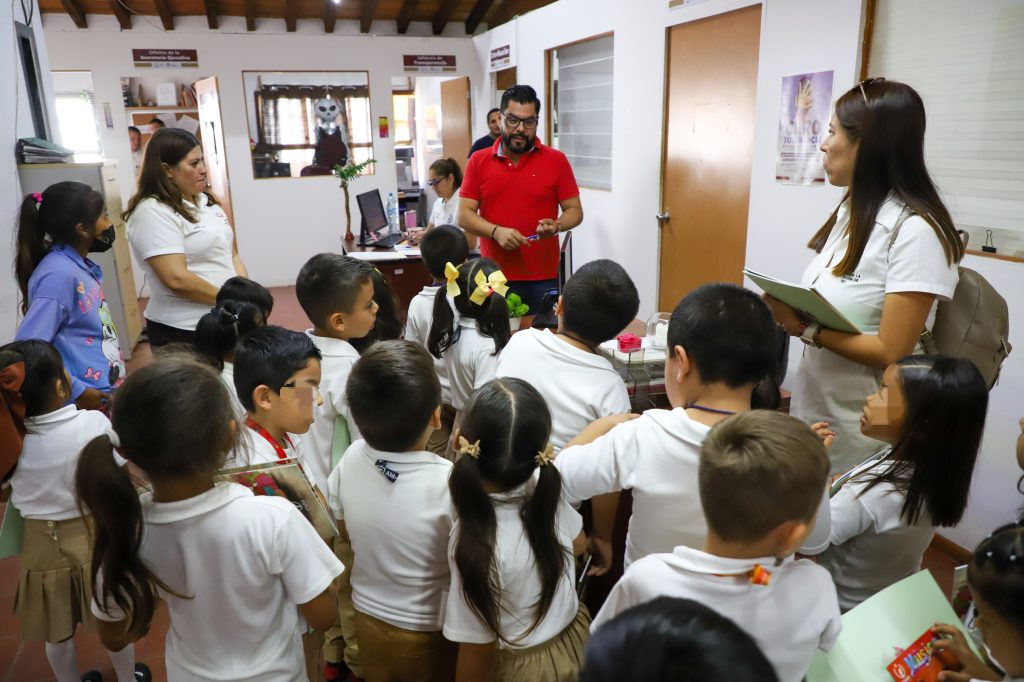 El grupo a cargo de las maestras Lily González Camarena y Ana Cristina Valencia, visitó al presidente municipal interino, Francisco José Martínez Gil, a quien le realizaron diversas preguntas para conocer más a fondo su labor, acción que replicaron también con algunos regidores quienes les explicaron las tareas que tienen a su cargo, y compartieron con ellos temas importantes como los derechos de la niñez.