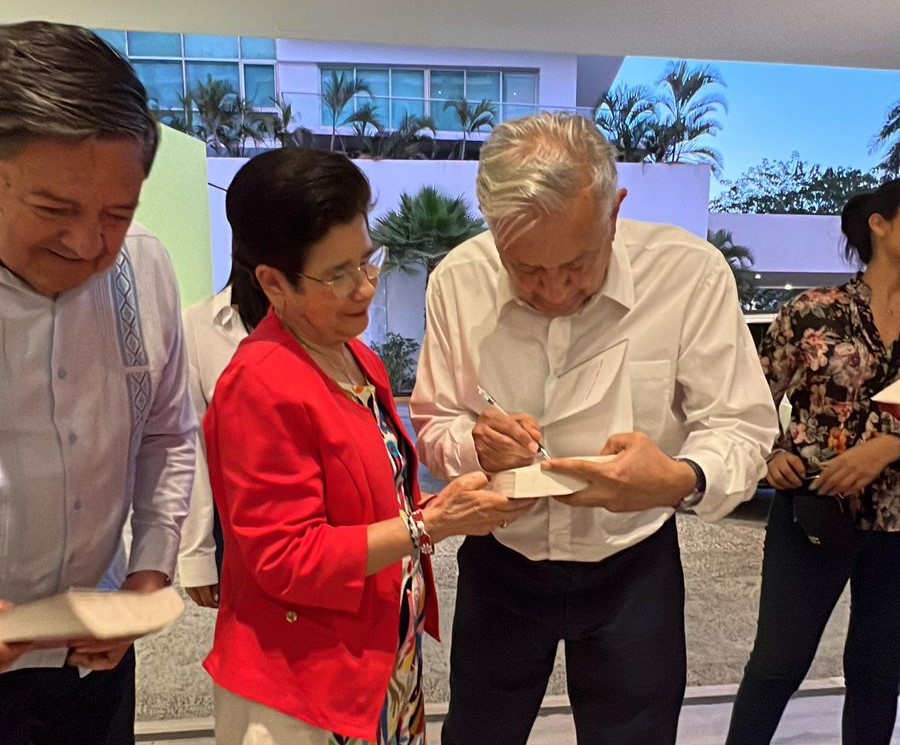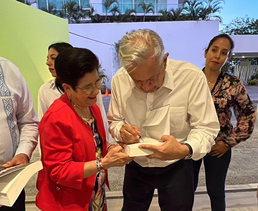 En dicha reunión,el mandatario federal regaló y firmó un par de ediciones de su libro “Gracias” tanto a la aspirante a la alcaldía “Chuyita López” como al Profe Michel.