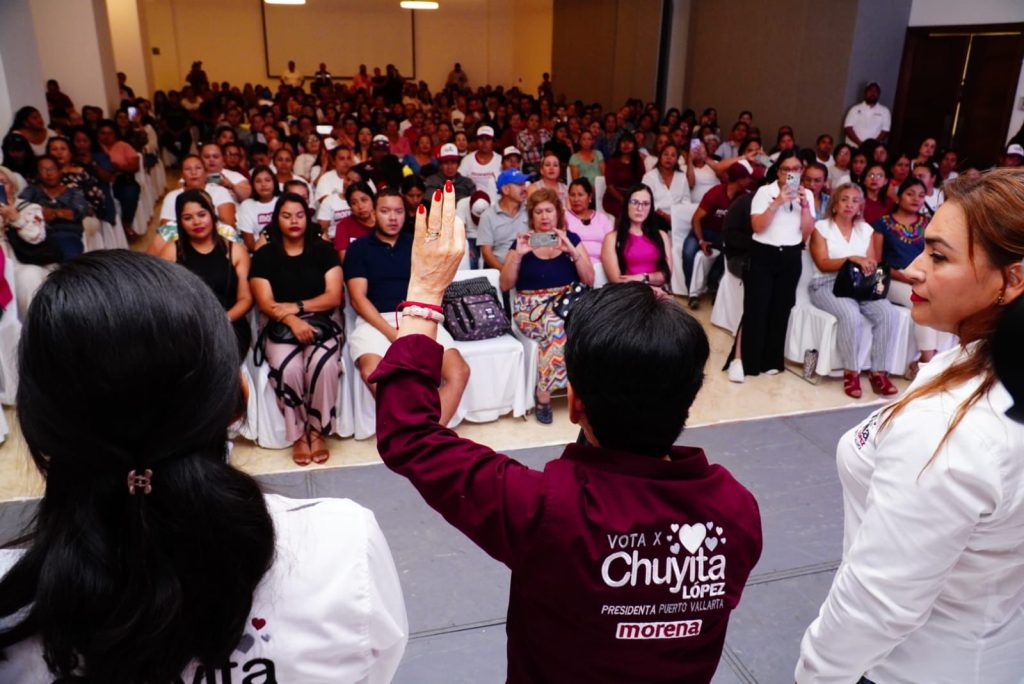 Chuyita López, candidata a la presidencia de Puerto Vallarta por Morena reunió en el marco del Dia del Trabajo, a más de 500 mujeres en el foro temático Amor por Vallarta, en el cual presentó un histórico programa dirigido a las mujeres; por el bien de todos, primero las mujeres.