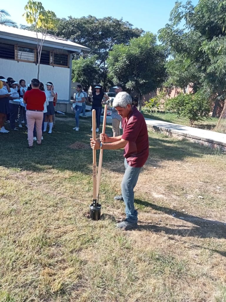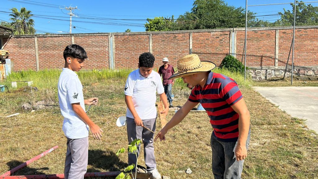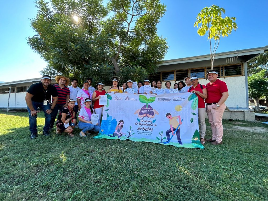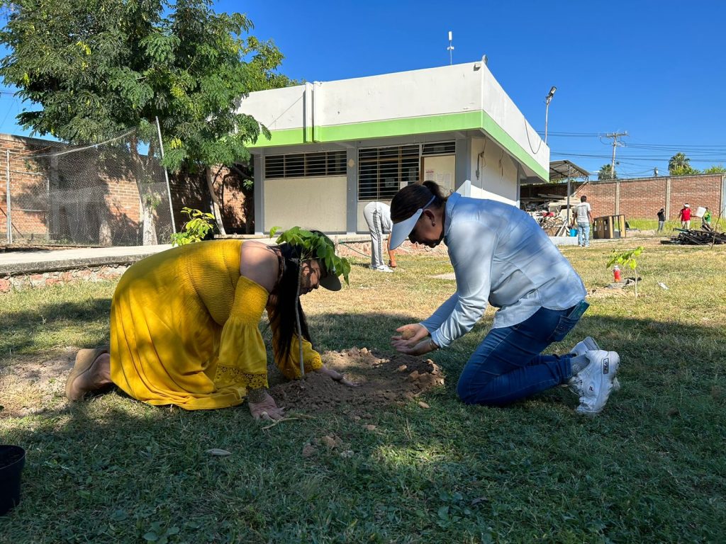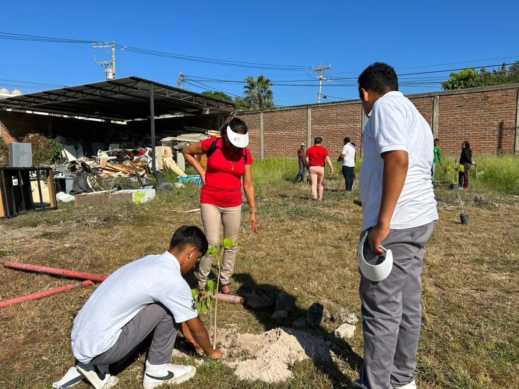 Elementos de la Jefatura de Parques y Jardines de la Dirección de Servicios Públicos Municipales, así como de la Subdirección de Medio Ambiente, entre otras dependencias, así como la regidora Curiel Preciado, en compañía de la directora Claudia Adela Quintero Celis y el subdirector Fausto Humberto de la O Díaz, personal docente y alumnos, sumaron esfuerzos para plantar los primeros 15 árboles de la especie conocida como primavera.