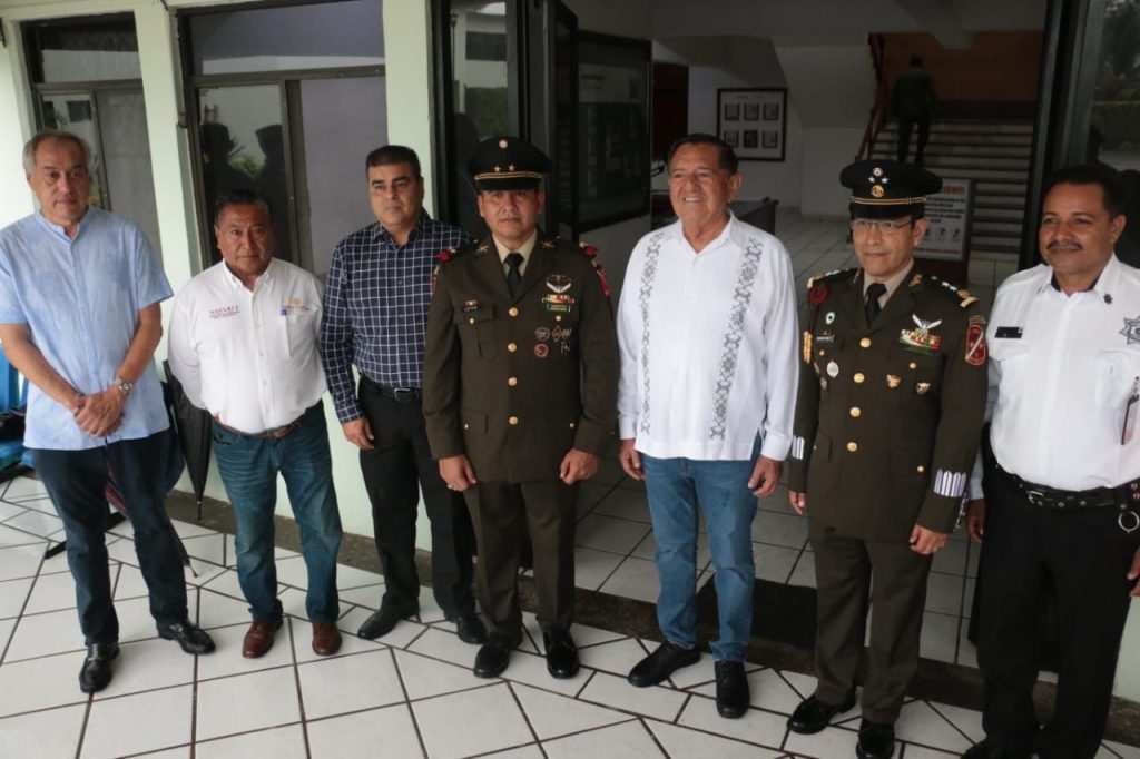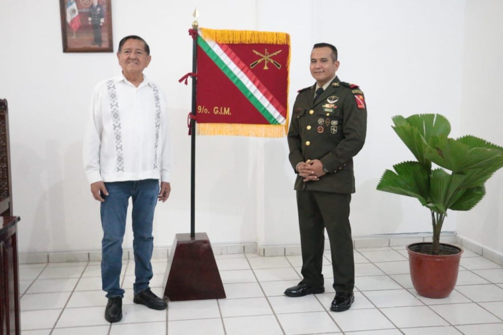El General de Brigada D.E.M. Sergio Ángel Sánchez García, comandante de la 41ª Zona Militar, presentó al alcalde Luis Alberto Michel Rodríguez al nuevo comandante interino del 9º Grupo de Infantería Motorizado y comandante del Centro de Adiestramiento, con sede en esta ciudad.