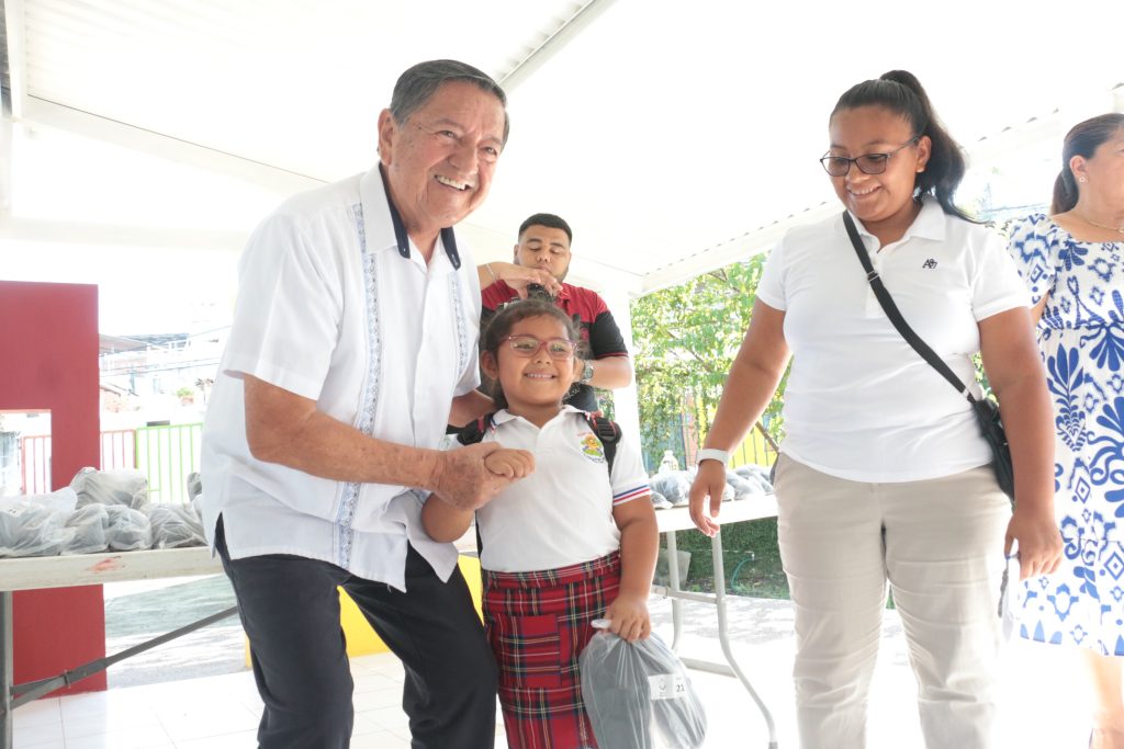 Acompañado por la directora del plantel, Leticia Casillas Romero y Evangelina Delgado Rivera, directora de Desarrollo Social del Ayuntamiento, el Profe Michel se mostró emocionado de poder entregar estos apoyos para los pequeños y que representa una gran ayuda para la economía de los padres de familia en este regreso a clases.