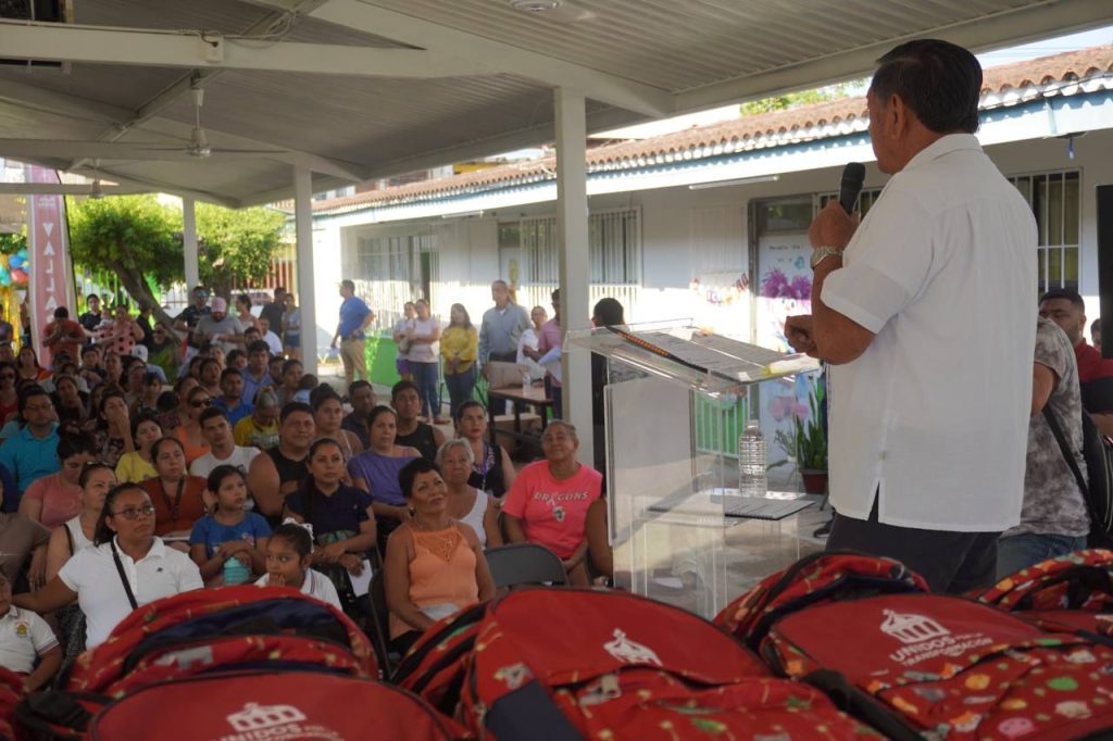 A su vez, Evangelina Delgado Rivera, directora de Desarrollo Social del Ayuntamiento, afirmó que la entrega de calzado y bolsos con útiles escolares para los pequeños, es uno de los diez programas que tuvo a bien implementar el Profe Michel, para que los estudiantes de nivel básico logren una educación de mejor calidad, y sea un apoyo económico para los padres de familia.