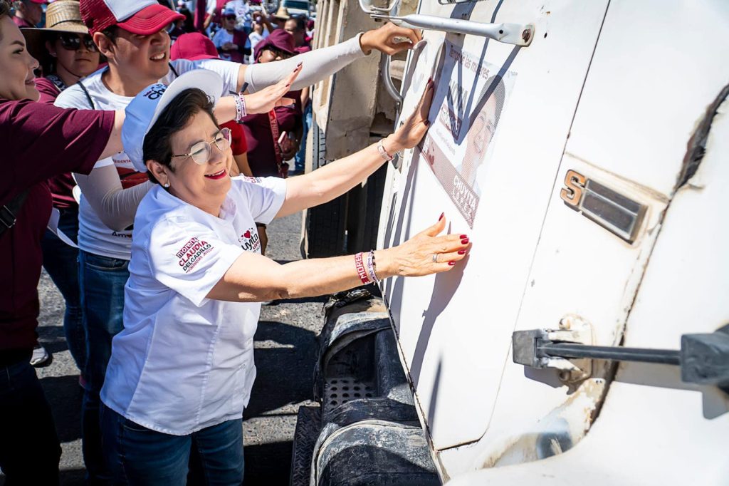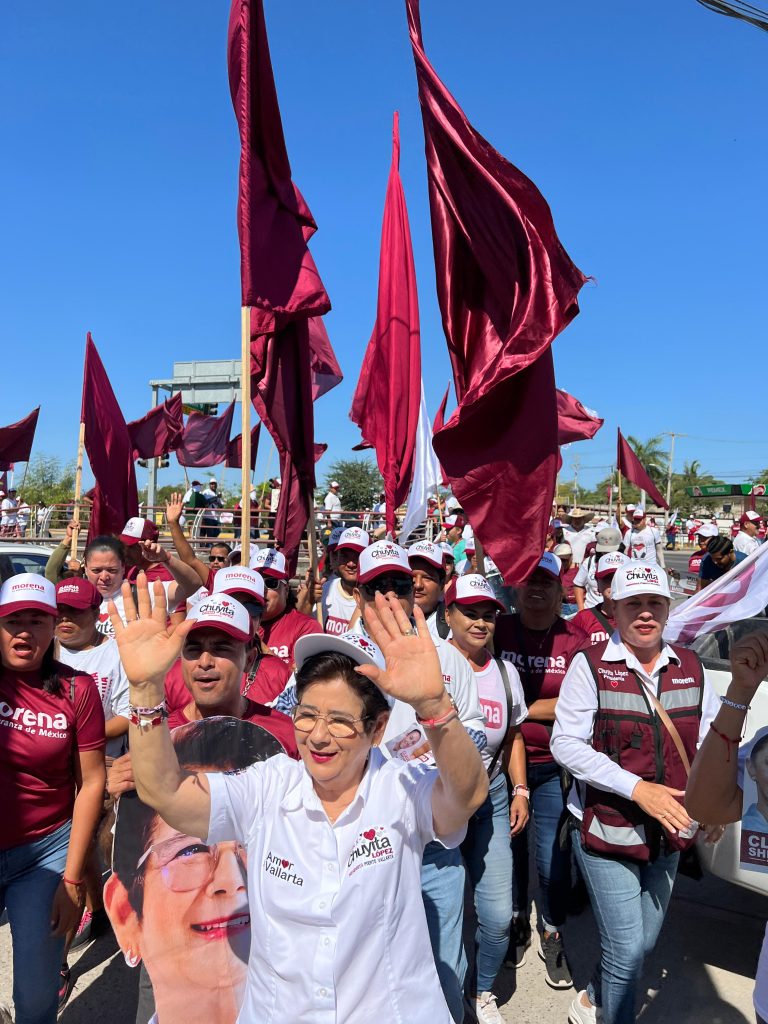 Chuyita López, candidata de Morena a la presidencia de Puerto Vallarta lidereó ese fin de semana una masiva pega de calcas en el crucero de avenida México y Politécnico en la que cientos de automovilistas aceptaron las calcas y manifestaron su apoyo a la morenista.