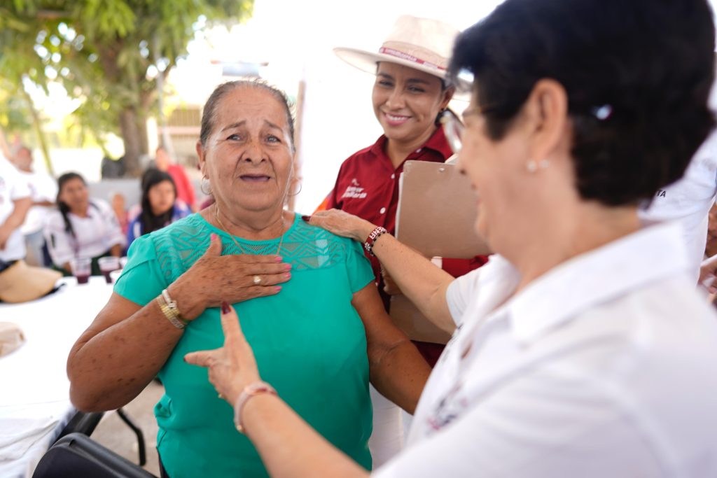 “Me da mucho gusto volver a ver a la señora, ella nos ayudó una vez que no teníamos para la medicina de mi esposo, fuimos hasta Vallarta a verla y pues le explicamos y nos ayudó y con eso pudimos comprar la medicina. Dios la bendiga mucho y por eso vamos con Morena.”