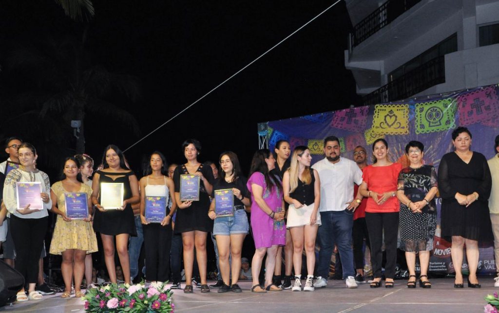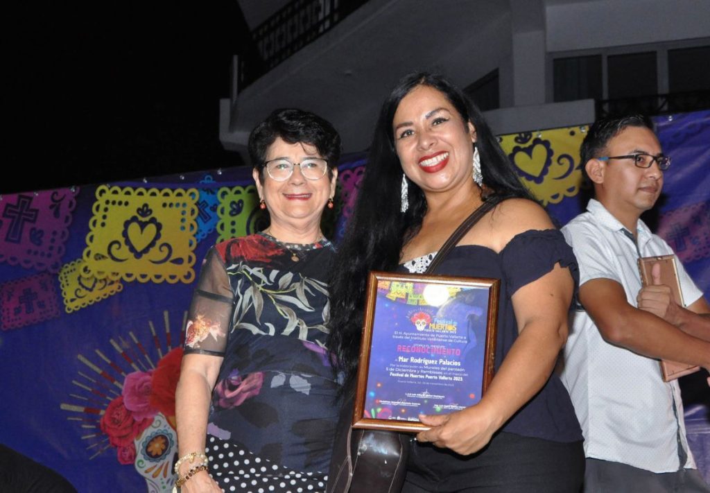 Enseguida fueron entregados reconocimientos a todos los participantes del Proyecto de las Catrinas Puerto Vallarta 2023, encabezado por el Dr. Juan Ernesto Navarro Salcedo, incluyendo las chicas que plasmaron su arte en la pintura, los realizadores de la estructura; la diseñadora de la pintura de cráneos y figuras alrededor de la catrina, Alondra Maluca, así como los artistas que pintaron los murales en las bardas de los cementerios municipales.
