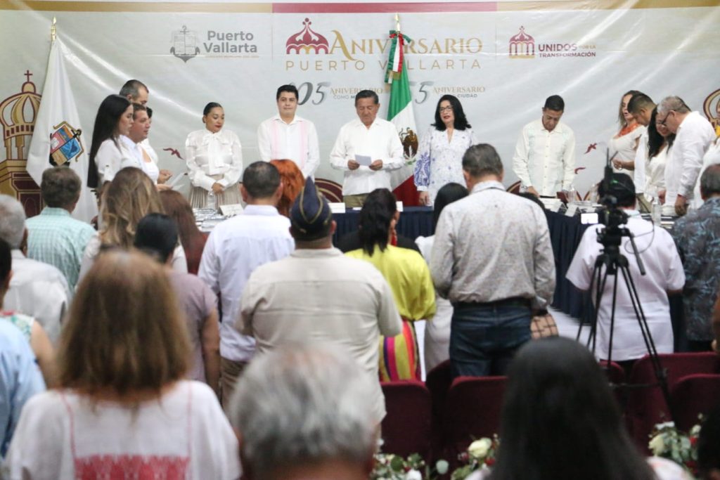 Con un reconocimiento a la riqueza natural de este destino turístico y a la grandeza de su gente, el Ayuntamiento conmemoró el 105 aniversario de la elevación de Puerto Vallarta como municipio y 55 como ciudad, a través de una sesión solemne realizada en el patio central de la presidencia.