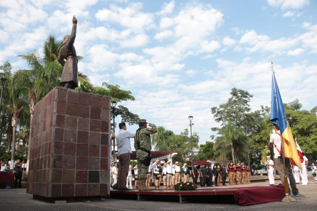 En ceremonia realizada en la explanada del Parque Hidalgo, autoridades civiles, militares y navales, conmemoraron el 202 aniversario de la Consumación de la Independencia de México. En este acto cívico, correspondió al Secretario General del Ayuntamiento, Felipe de Jesús Rocha Reyes, con la representación del alcalde Luis Alberto Michel Rodríguez, dar lectura a la reseña histórica de esta fecha.