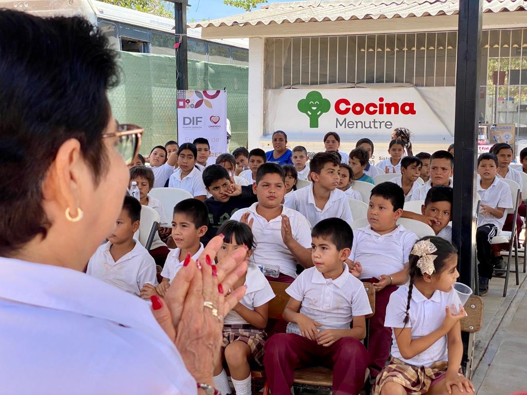 En atención a una mejor alimentación para niñas y niños que cursan el preescolar o primaria en Puerto Vallarta, se hizo entrega del proyecto “Cocinas MENUTRE” por parte del Sistema DIF Municipal que encabeza María de Jesús López Delgado en coordinación con DIF Jalisco, beneficiando en esta ocasión a estudiantes del jardín de niños ‘José Figueroa’, en la colonia 12 de Octubre y la escuela ‘Francisco I. Madero’ en la localidad de Tebelchía.