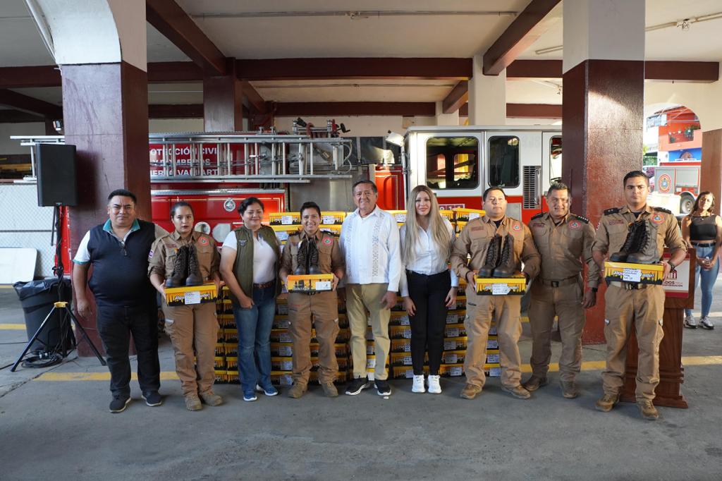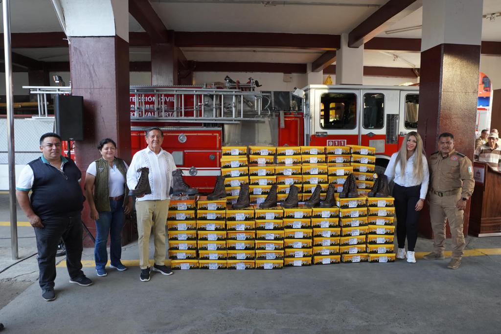 El gobierno municipal de Puerto Vallarta entregó este martes 117 pares de botas al personal sindicalizado de la Dirección de Protección Civil y Bomberos como parte de los uniformes especiales que requieren para mejorar las condiciones en que el personal de emergencias trabaja en beneficio de la comunidad.