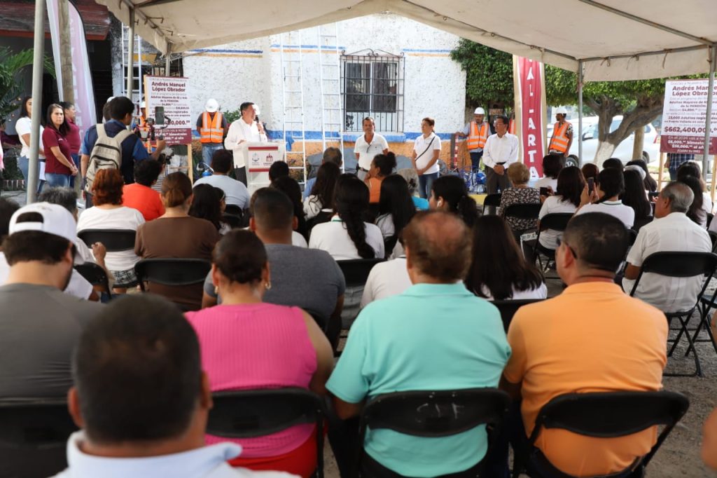 Acompañado por la presidenta de la junta vecinal, Cindy Marisela Tejeda Carrillo; José Cruz Hernández Pantoja, director de la Escuela Secundaria No. 60; del señor Bernabé Miramontes Vargas, vecino y beneficiario, así como de Isabel Guillén, coordinadora de sector, el Profe Michel recordó que lo anterior es resultado de la gestión que hizo con directivos de una empresa bancaria, que aporta los recursos para hacer realidad esta transformación en La Aurora.
