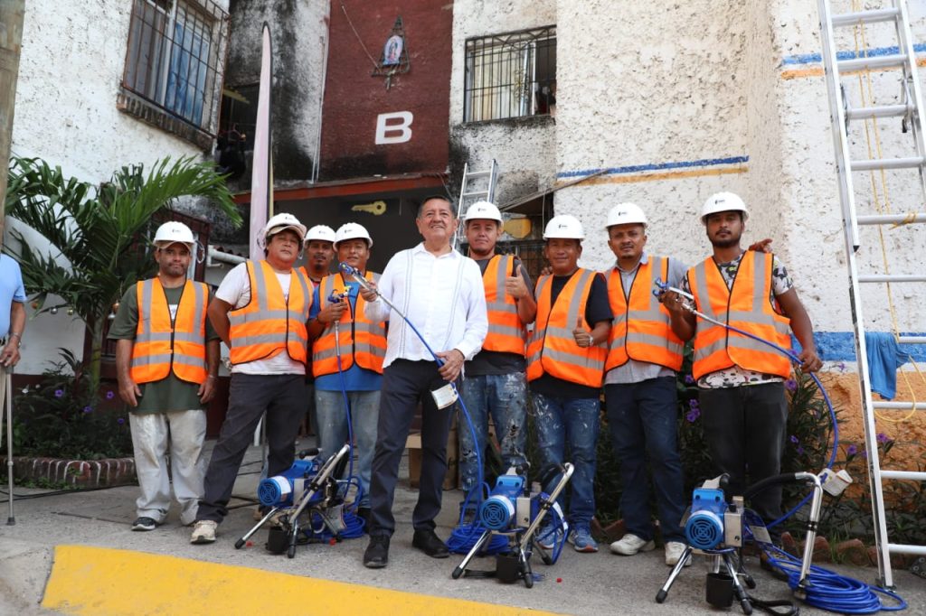 La colonia La Aurora mostrará pronto un verdadero cambio, “porque la transformación sigue en Puerto Vallarta”, reiteró este viernes el alcalde, Profesor Luis Alberto Michel Rodríguez, al dar el arranque a los trabajos de pintura de los 65 edificios de este fraccionamiento habitacional.