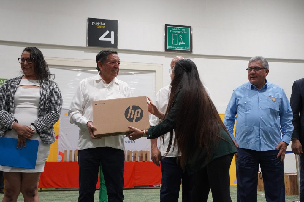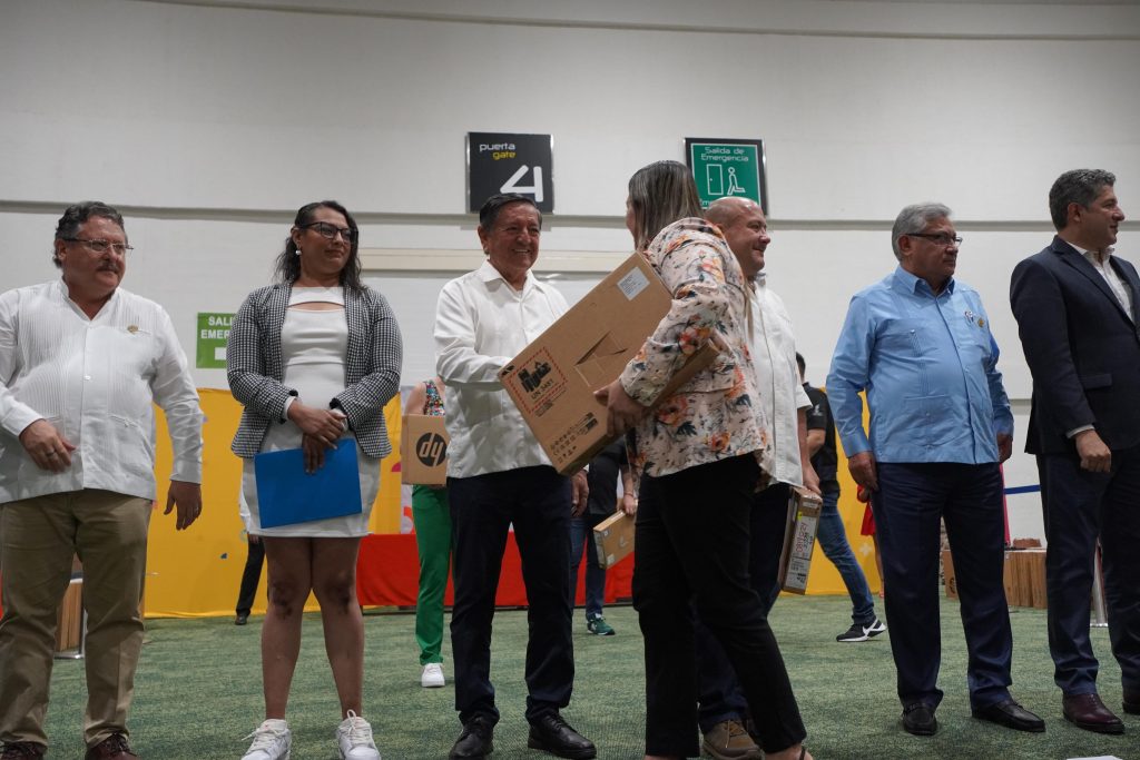 Previamente, en otro espacio del Centro Internacional de Convenciones, Michel Rodríguez fue testigo de la entrega de computadoras por parte de la Secretaría de Educación Jalisco a los maestros de educación primaria de escuelas públicas de los municipios de la Región Costa Sierra Occidental.