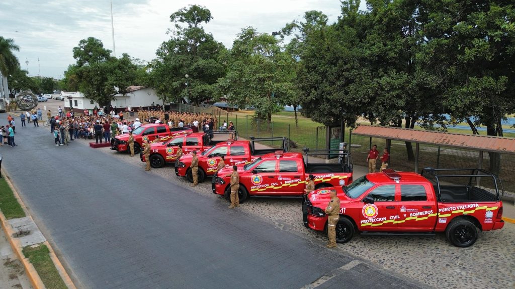 El gobierno municipal entregó este martes cinco camionetas equipadas a la Dirección de Protección Civil y Bomberos, con lo cual se fortalece esta corporación de rescate y aumentará su capacidad de reacción para beneficio de la población vallartense.