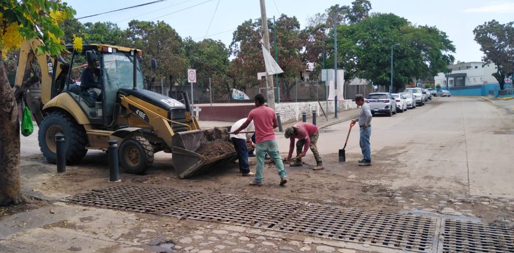 En los últimos días, las cuadrillas de la Dirección de Obras Públicas, han realizado tareas prioritarias para que las lluvias que se han presentado en la ciudad no ocasionen estragos o bien, reparando los ocasionados por estas para evitar encharcamientos, accidentes y daños a los vehículos.