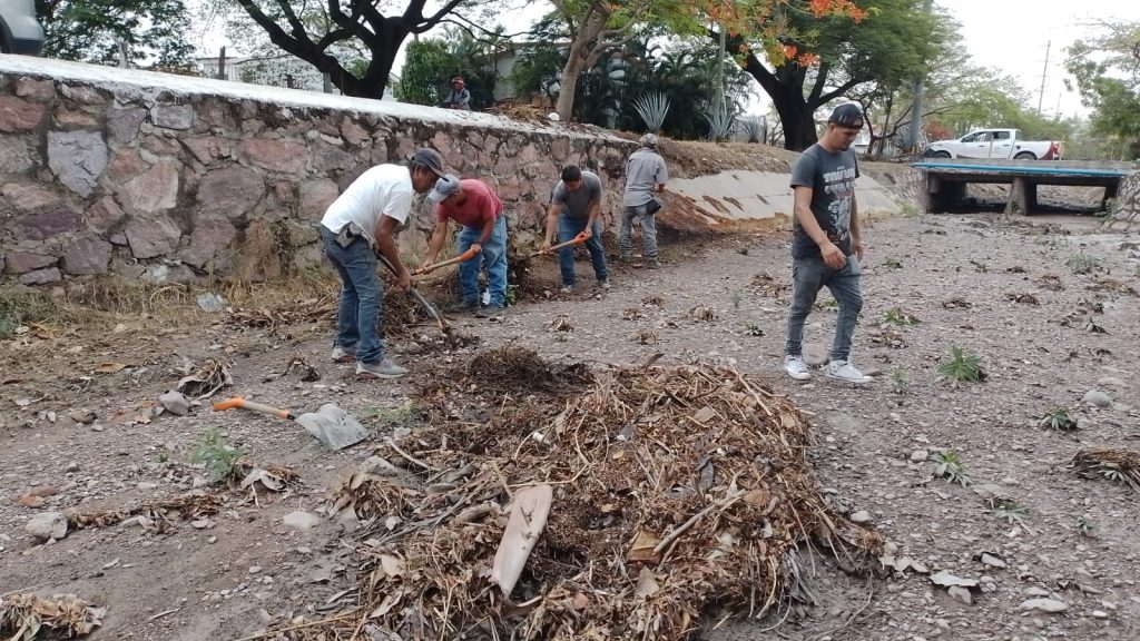 De igual forma, personal de la dependencia ha realizado el retiro de azolve en las avenidas Víctor Iturbe y 16 de Septiembre, y en la calle España equina con Inés Meza, en Lomas del Calvario, para un mejor rodamiento de los vehículos; además de prestar apoyo al Ejido Vallarta para el desagüe de sus caminos, la reparación de los mismos y la limpieza de cunetas. Y en los últimos días, se llevó a cabo la demolición de empedrado para el colado de huellas de concreto en las calles Cardenal y Codorniz, en Paso Ancho; y se rehabilitó el parque lineal de la delegación de Ixtapa, entre otras acciones más.