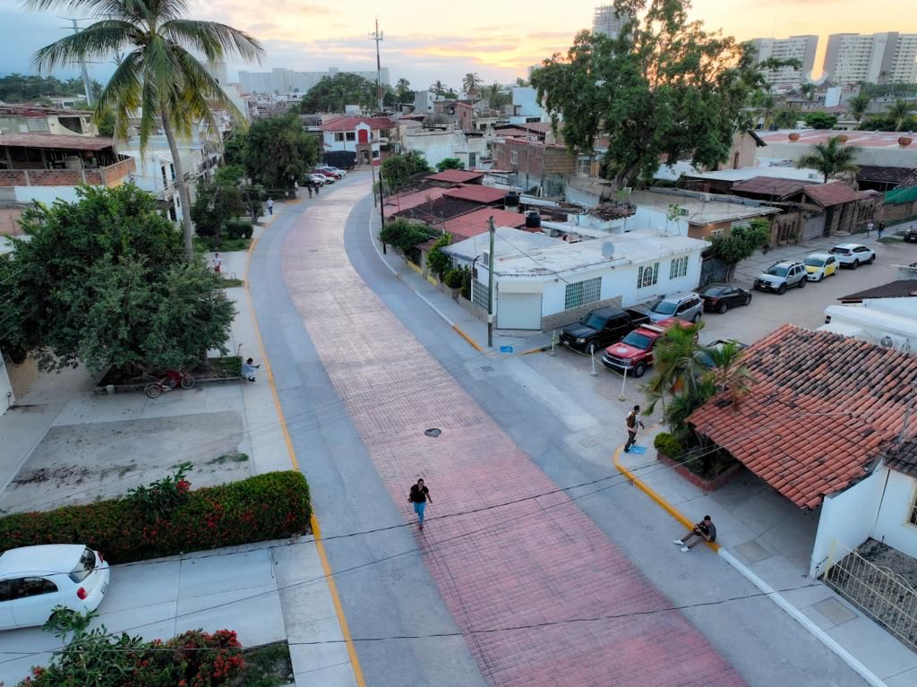 La vialidad hoy cuenta con huellas de concreto y empedrado ahogado en mortero, en una superficie de más de 4 mil 300 metros cuadrados, casi mil metros de machuelo y dos mil metros cuadrados de banqueta, con lo cual ha cambiado la vida en esta colonia pues de esa forma se evitará que se despeguen las piedras, habrá menos polvo y aumentará la plusvalía de muchas viviendas.