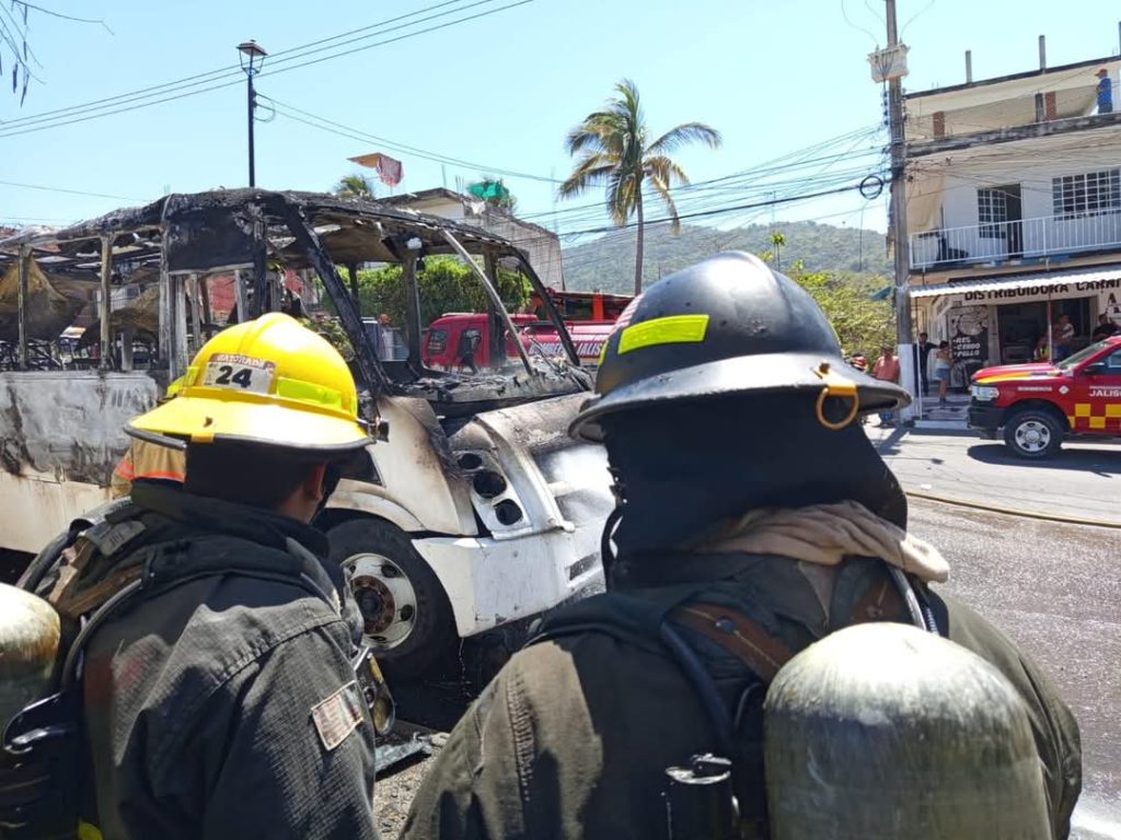 Elementos de Protección Civil y Bomberos de Puerto Vallarta lograron sofocar un incendio que consumió un camión de transporte público en la colonia La Primavera.