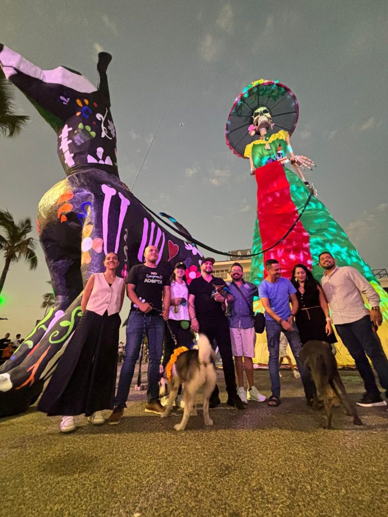 El malecón de Puerto Vallarta se llenó de alegría y color con la develación, a cargo del alcalde Luis Munguia, del Guardián espiritual de la Catrina Monumental, un evento que atrajo a cientos de personas y sus adorables mascotas.