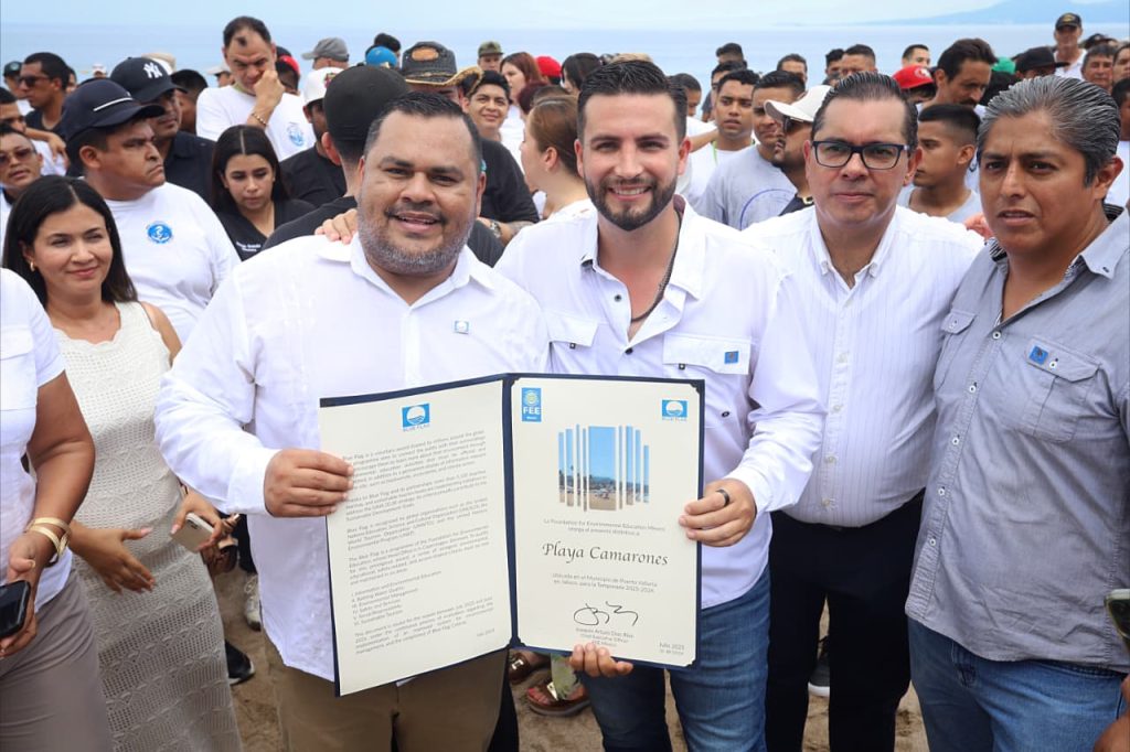 La playa Camarones de Puerto Vallarta acaba de recibir la certificación Blue Flag, un reconocimiento internacional que destaca la excelencia en calidad de agua, gestión ambiental, seguridad y servicios. El presidente municipal, Luis Munguía, recibió personalmente la distinción por parte de la Fundación para la Educación Ambiental (FEE) México.