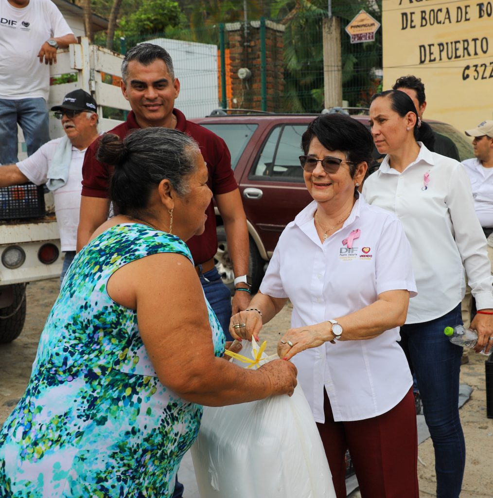 El Sistema DIF municipal de Puerto Vallarta, que preside María de Jesús López Delgado, este jueves entregó más de 150 apoyos alimentarios, así como prendas de vestir y blancos, a las familias del poblado Boca de Tomatlán que resultaron afectadas por el paso del huracán “Lidia”, externando que “¡No están solos!”.