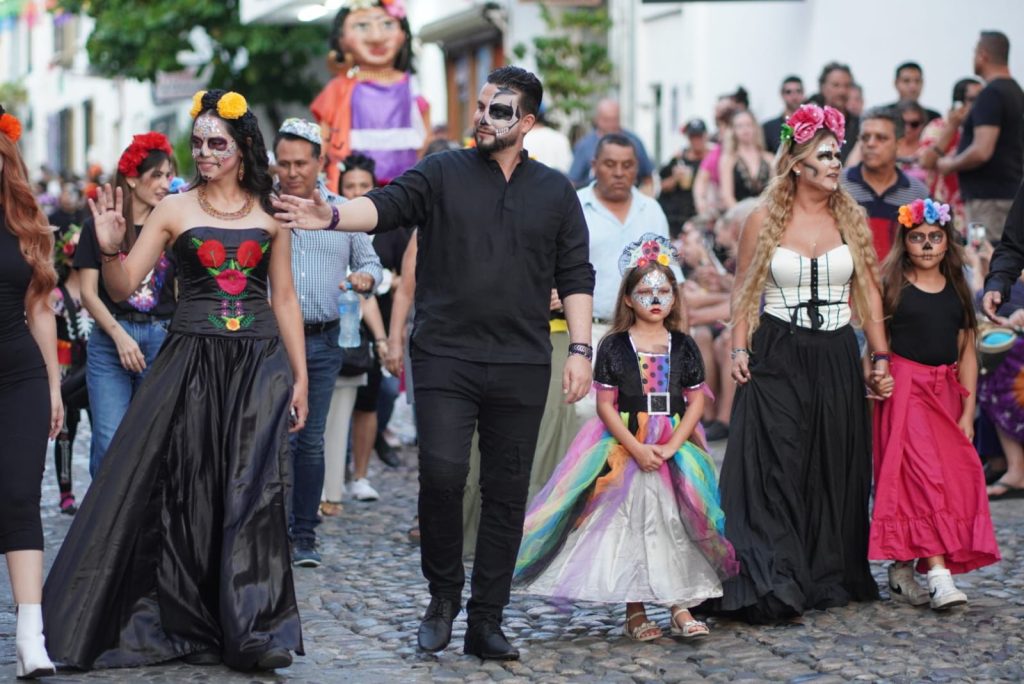 Durante el festival, la familia DIF estuvo presente en la inauguración de la monumental catrina, el magno desfile de muertos, la caminata perruna y develación del guardián espiritual, actividades encabezadas por el presidente municipal Luis Munguía.