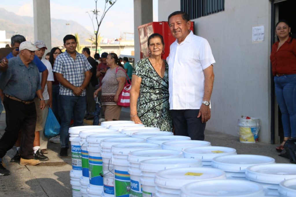 La señora María Yolanda Romero recibió dos cubetas de pintura y con entusiasmo expresó: “Estoy muy agradecida, muy feliz con el Profe Michel porque por fin tengo mi pintura, estuve tiempo esperando porque en las anteriores administraciones no atendieron mi solicitud o me cambiaban el material. Por fin podré pintar la fachada de mi casa, con material de muy buena calidad”.