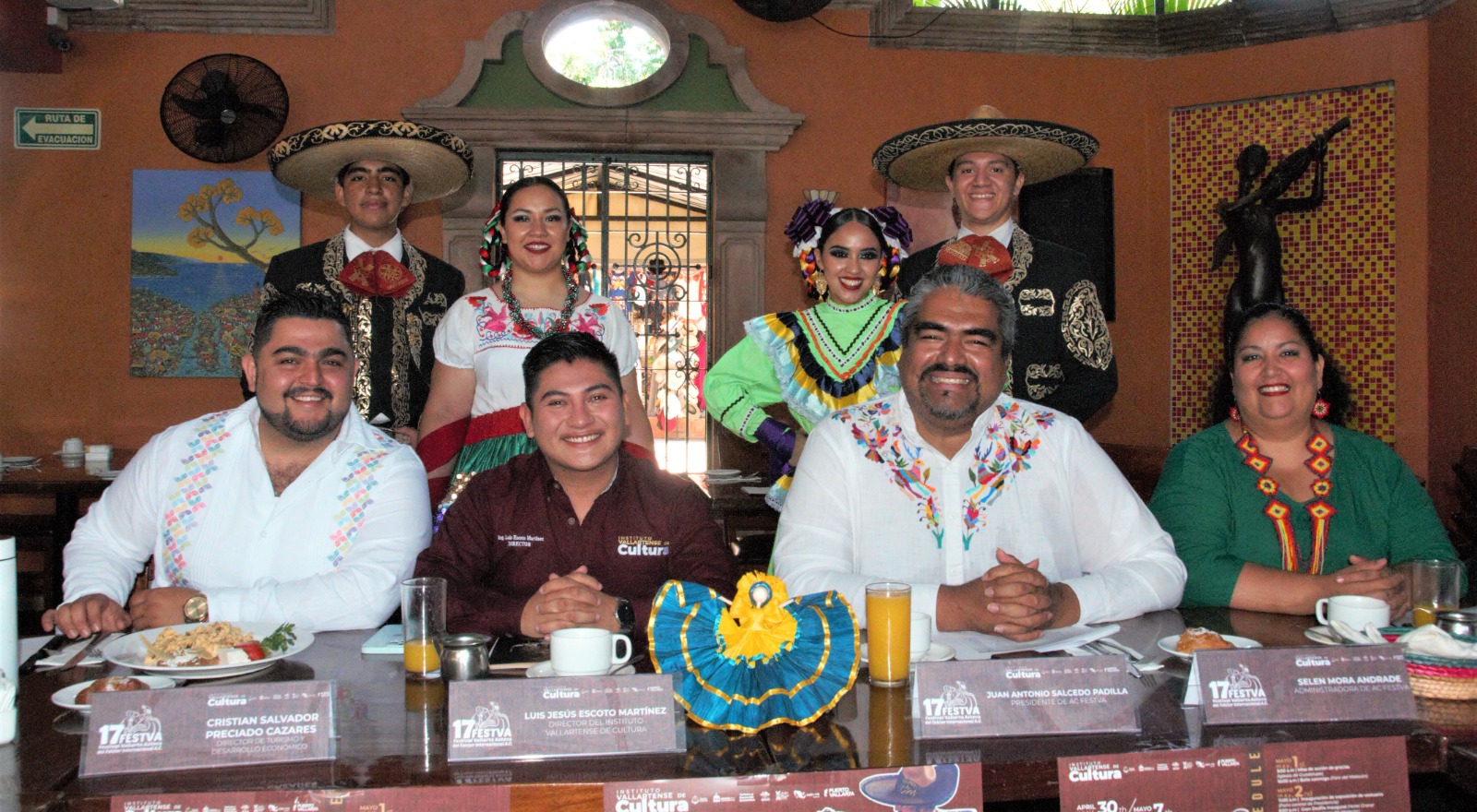En rueda de prensa encabezada por el director del Instituto Vallartense de Cultura (IVC), Luis Jesús Escoto Martínez, acompañado del director de Turismo y Desarrollo Económico del Ayuntamiento, Christian Salvador Preciado Cázares, y el presidente de la asociación civil FESTVA y director del ballet Vallarta Azteca, Juan Antonio Salcedo Padilla, se dieron a conocer los pormenores del evento.