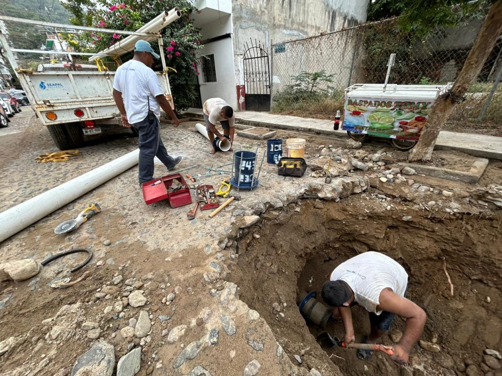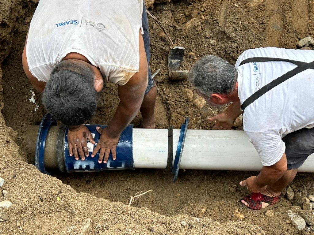 El Sistema de Agua Potable, Drenaje y Alcantarillado (SEAPAL) de Puerto Vallarta, informa que este martes 30 de enero realizó la reparación de la línea de bombeo de la Galería 3 al Tanque Iturbide, en el cruce de las calles Aquiles Serdán y Naranjo, en la colonia Emiliano Zapata.