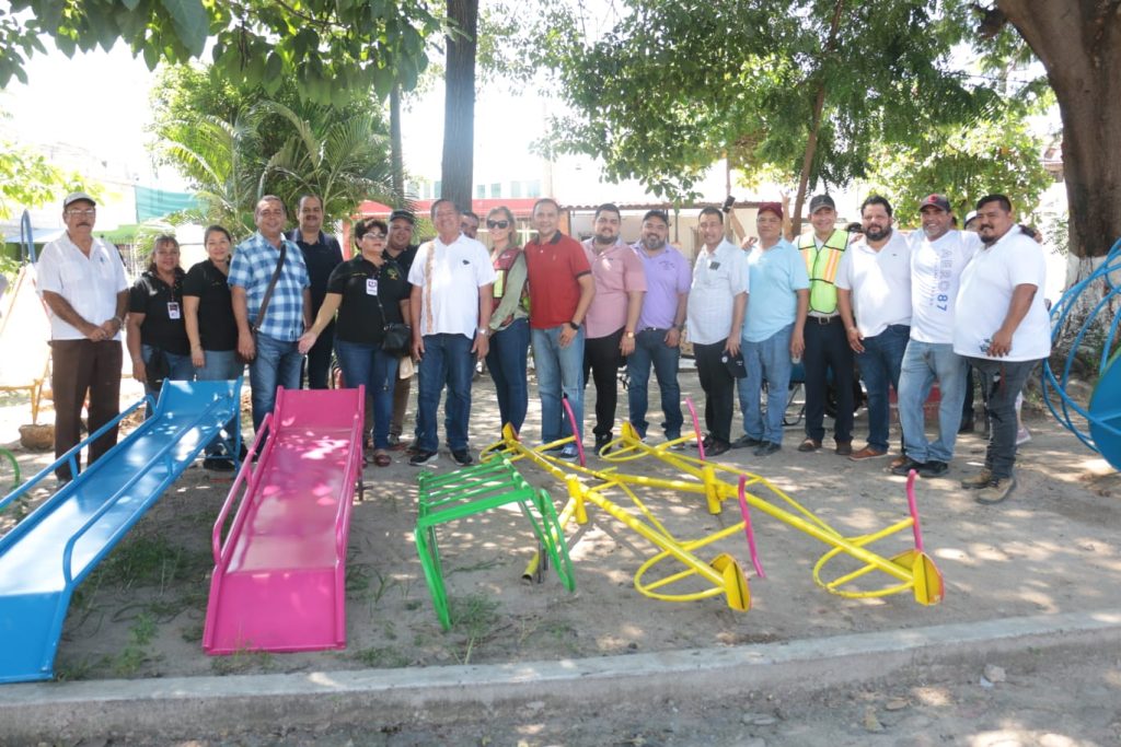 La jornada de trabajo se llevó a cabo durante varias horas y ya cerca del final el Profe Michel entregó un paquete de juegos infantiles que se colocarán en el área verde de la colonia Las Arboledas ubicada entre Av. México, Pino y Caoba.