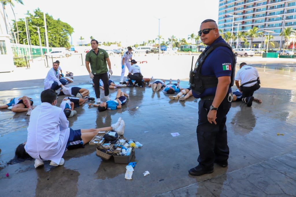Se trató de una práctica en escala real, con la participación de los tres órdenes de gobierno, consistió en una amenaza con coche-bomba en un estacionamiento público de la terminal marítima, y al no ceder la autoridad competente a la extorsión, estalló la bomba y provocó numerosos heridos.