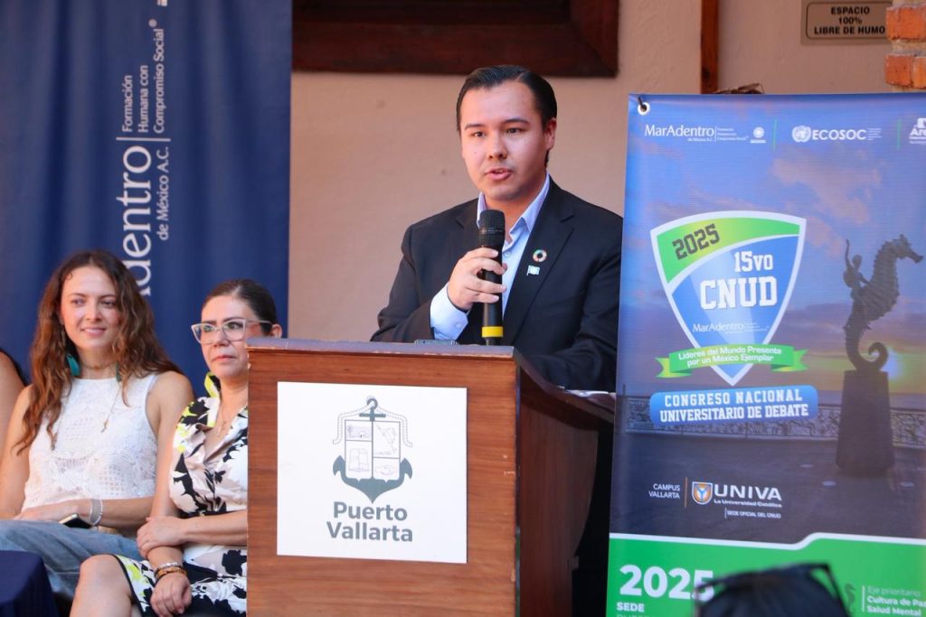 Por su parte, Alexy Romero, directora ejecutiva de Mar Adentro de México A.C., asociación dedicada a impulsar el liderazgo juvenil y la cultura de paz a través del debate, agradeció al municipio y a instituciones educativas por hacer posible esta edición. Destacó la participación de estudiantes de universidades como UNIVA Puerto Vallarta, Tecnológico de Monterrey, Universidad de Guadalajara y Universidad Autónoma de Nayarit, entre otras, en una jornada que busca promover nuevas propuestas de política pública.